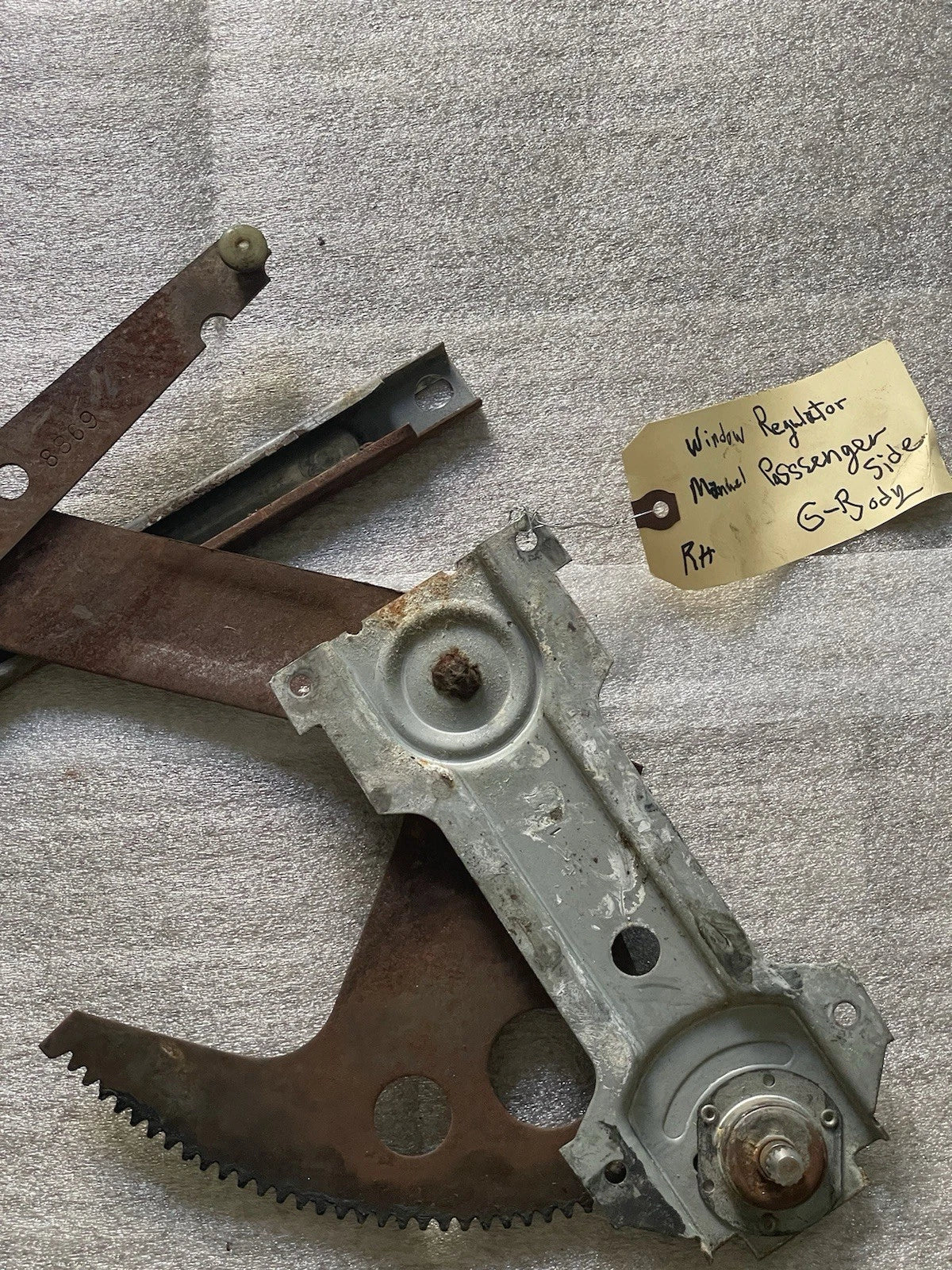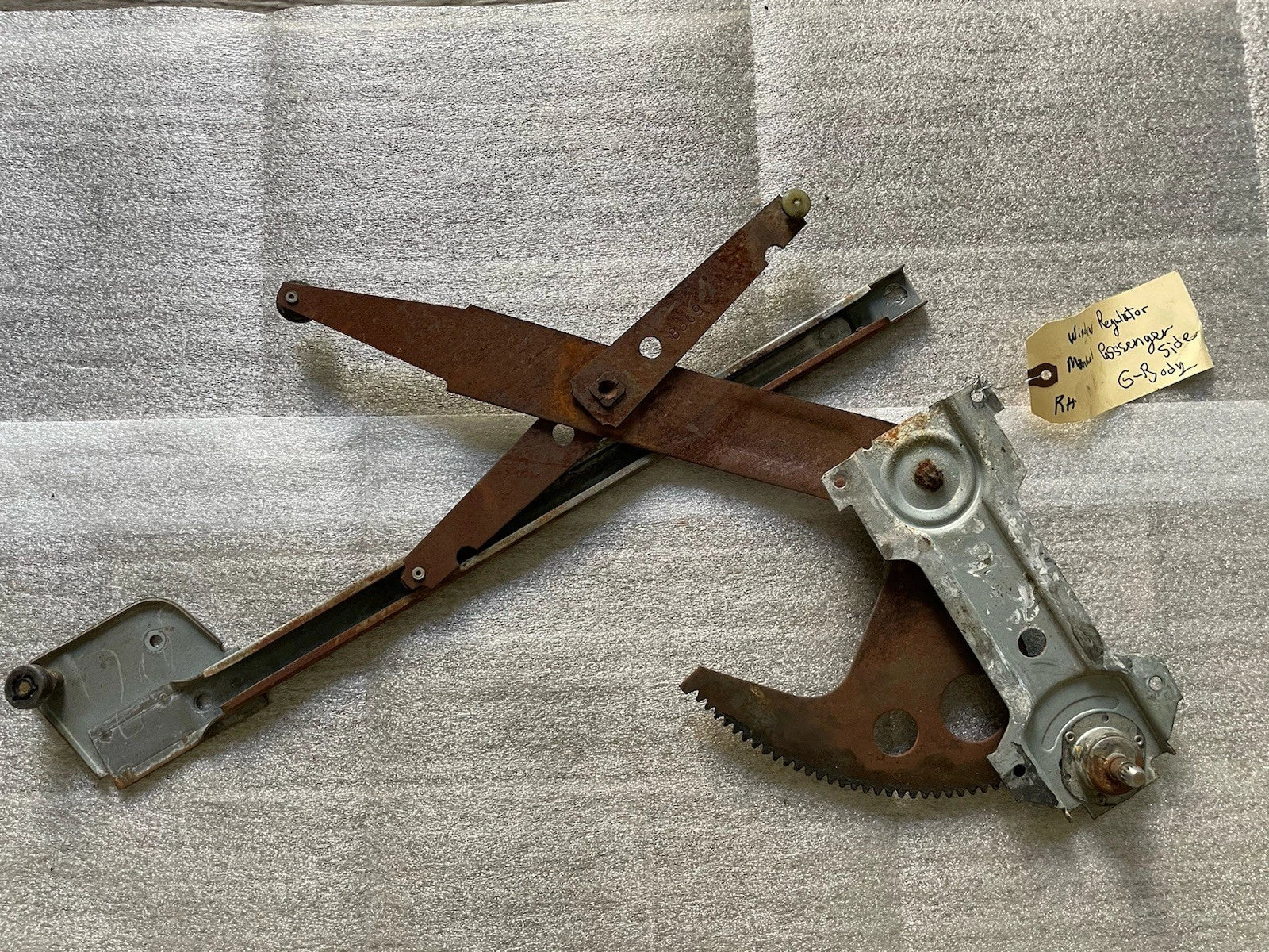 Fits GM G-Body models: Oldsmobile Cutlass, Chevrolet Monte Carlo, and Buick Regal (1981–1988). Manual window regulator for the right passenger side. Good condition and ready to install.